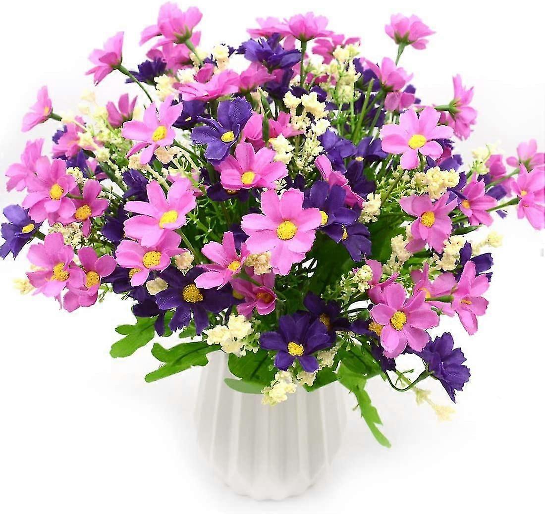 4 Artificial Flower Bouquet 28 Heads, Cute Fake Daisy Flower (red)