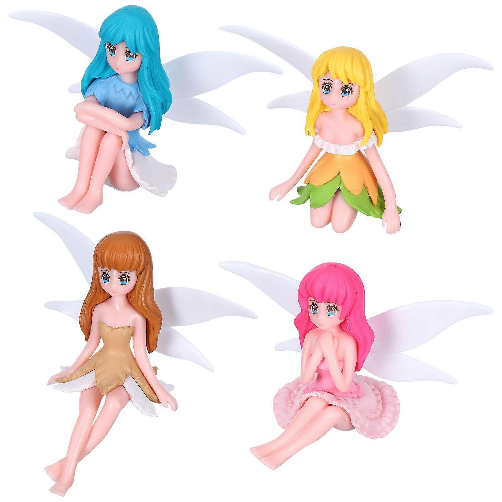 4pcs Adorable Flower Fairy Statues for DIY Garden Micro Landscape Decorations – Lightweight & Durable Ornaments for Bonsai and Fairy Tale Scenes