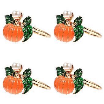 4pcs Halloween Pumpkin Napkin Rings, Reusable Pearl Plated Buckles for Party, Wedding, or Family Gathering Decorations, Easy to Clean