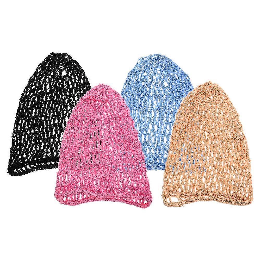4pcs Crochet Hair Nets Handmade Mesh Sleep Caps for Women – Breathable Comfortable Hair Covers for Thick, Thin, Short Hair – Pink, Khaki, Black,