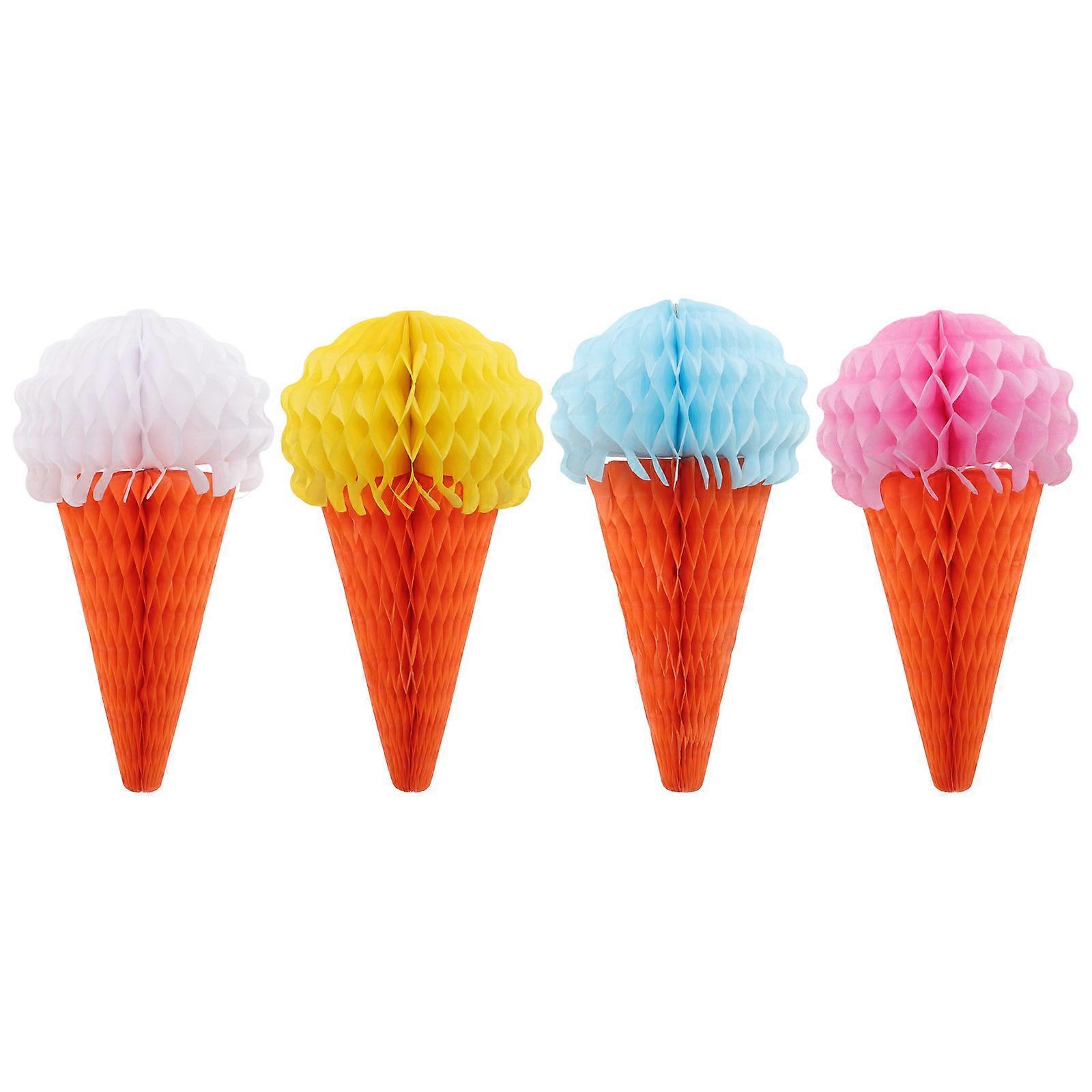 4pcs Paper Ice Cream Honeycomb Ball Decorations for Hawaiian Party Hanging Ornaments in Yellow, White, Blue and Pink