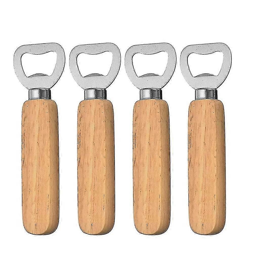 4pcs Wooden Handle Stainless Steel Beer Bottle Opener Smooth Wood Drinks Bottle Cap Opener For Home Party Bar Bartenders