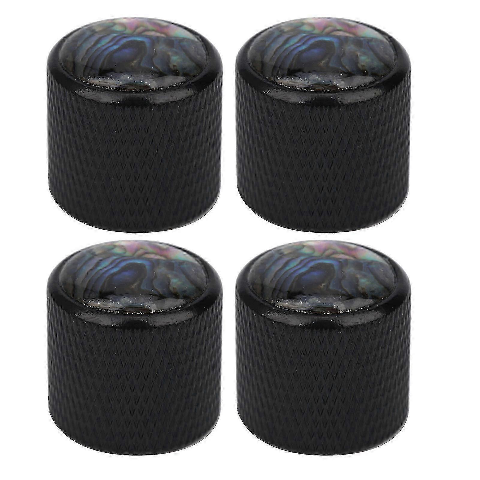 4 Pcs Electric Bass Knob Dome Metal High End Shell Inlaid Tone Volume Control Guitar Parts(Color Shell Black)
