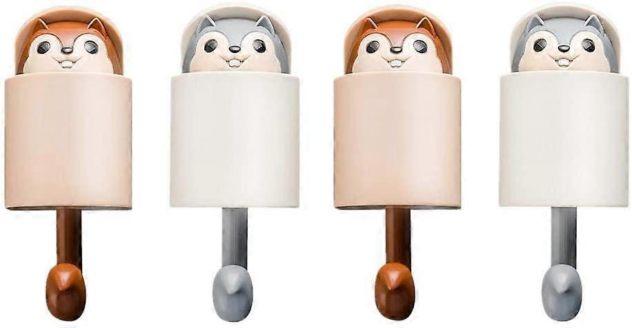 4 Pcs Cartoon Animal Sticky Hooks Entry Key Storage Hook Creative Coat Racks Organizer Hangers