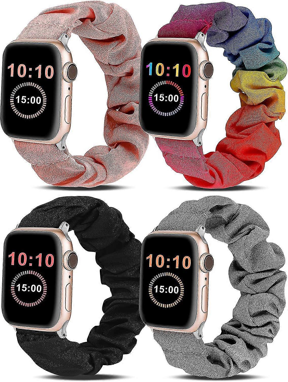 4 Pcs Compatible For Apple Watch Strap Scrunchie Soft Cloth 38mm 40mm 41mm /42mm 44mm 45mm Cute Printed Watch Bands Women Stretchy Bracelet For Apple