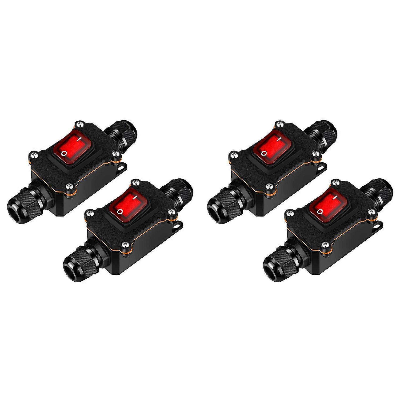 4 Pcs 12V Inline Switch Waterproof Inline Cord Switch Waterproof Toggle Switch with Red Light Rocker Button