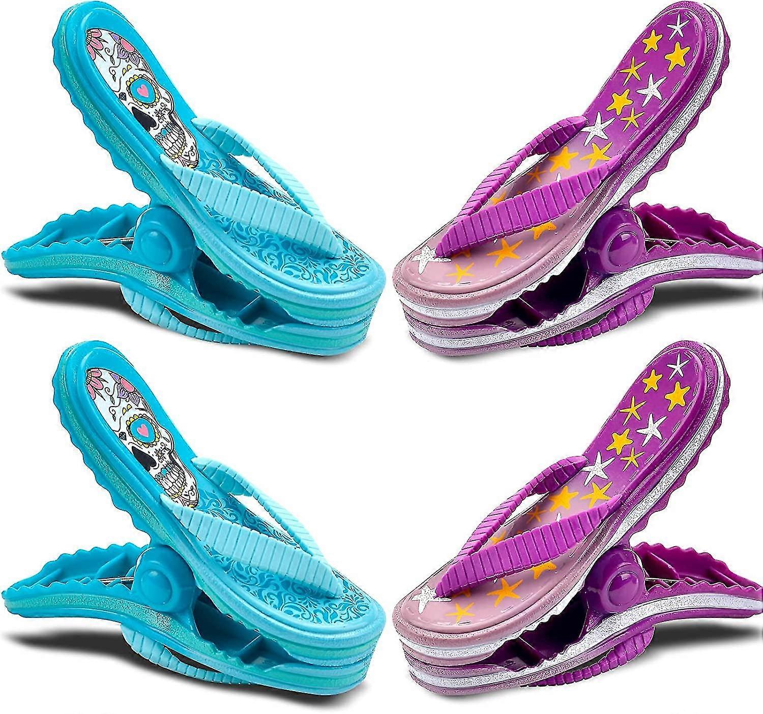 4 Pack Slipper Towel Clips Large Beach Towel Clips Novelty Sunbed Beach Pegs Slippers Pattern Laundry Clothes Clip