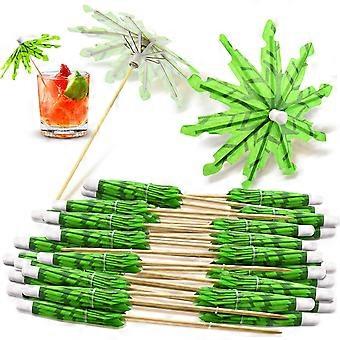 40 τεμάχια πράσινα τροπικά φοινικόδεντρα καρύδας οδοντογλυφίδες χάρτινες ομπρέλες μπαμπού οδοντογλυφίδες χειροποίητα κοκτέιλ Ξυλάκια ομπρέλας για διακοσμήσεις κοκτέιλ