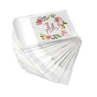 400pcs Thank You Plastic Bags Pink Flower Self Adhesive Cookie Mini Candy Packaging Biscuit Roastin