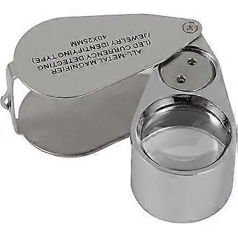 40X μεταλλικός φωτιζόμενος μεγεθυντικός φακός βρόχου κοσμημάτων, πτυσσόμενος μεγεθυντικός φακός τσέπης ματιών κοσμηματοπωλείων με LED (ανίχνευση νομισμάτων LED / αναγνωριστικό κοσμήματος)
