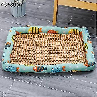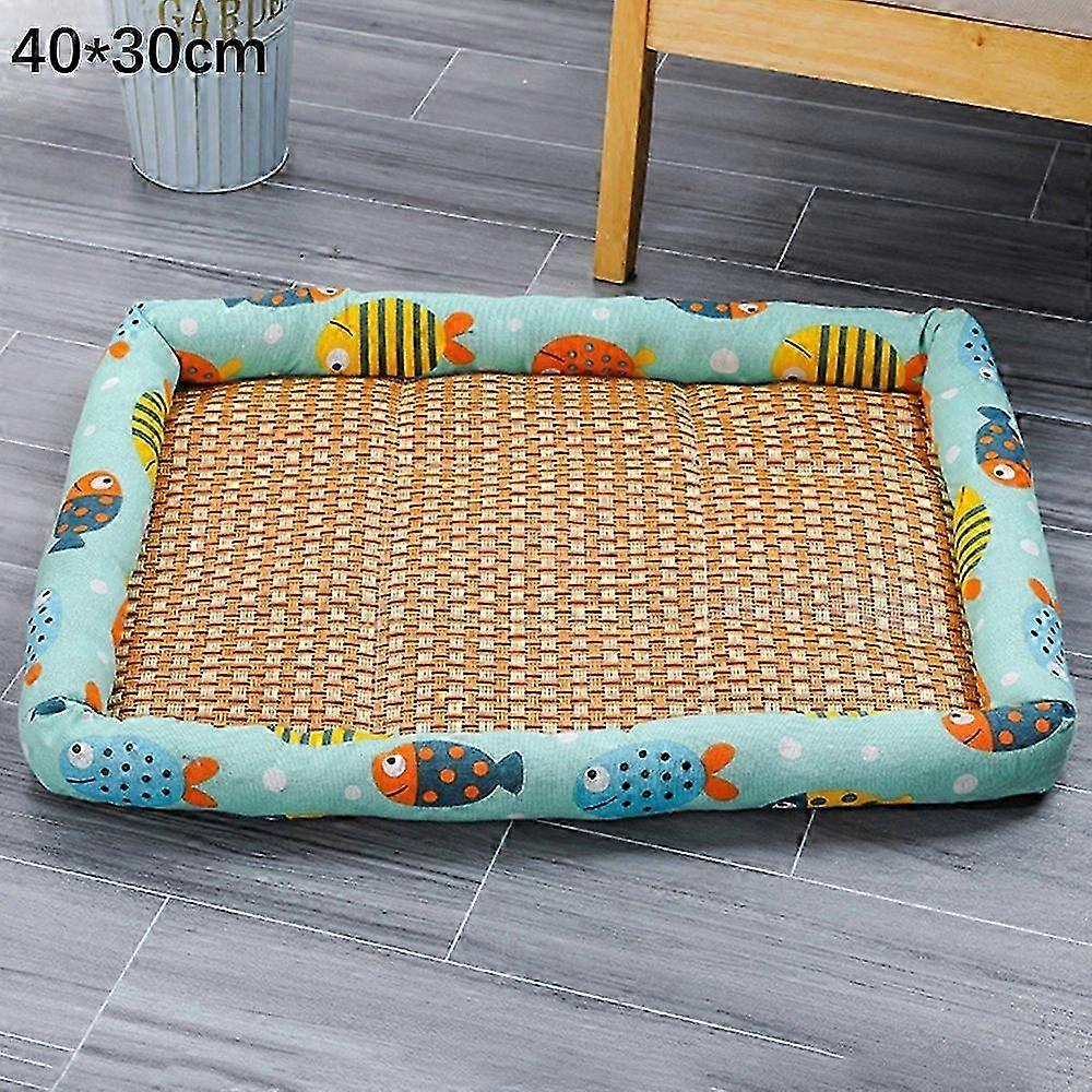 40x30cm Pet Rattan Cooling Mat Rest Sleeping Bed Summer Cat Dog Bed Floor Mat - Green/Fish Suitable for Various Brands