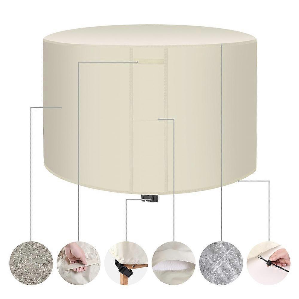 420D Oxford Cloth Outdoor Waterproof Round Furniture Cover Garden Table and Chair Protective Cover Garden Furniture Dust Cover Beige (142*68cm)