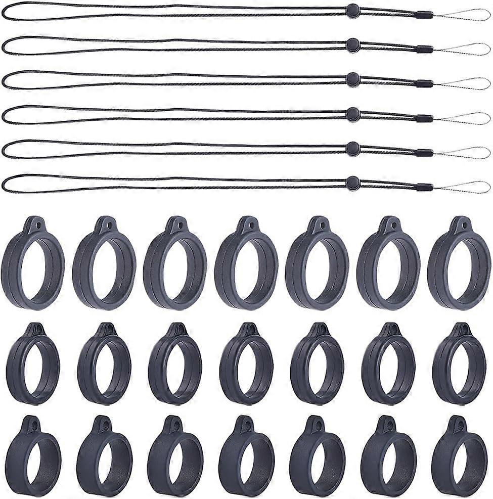 42PCS Black Anti-Lost Necklace Lanyard Set Including 6PCS Anti-Loss Pendant Strap String Holder with 36PCS Silicone Rubber Rings for Key Chains Outdoo