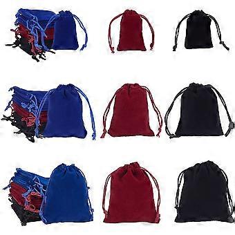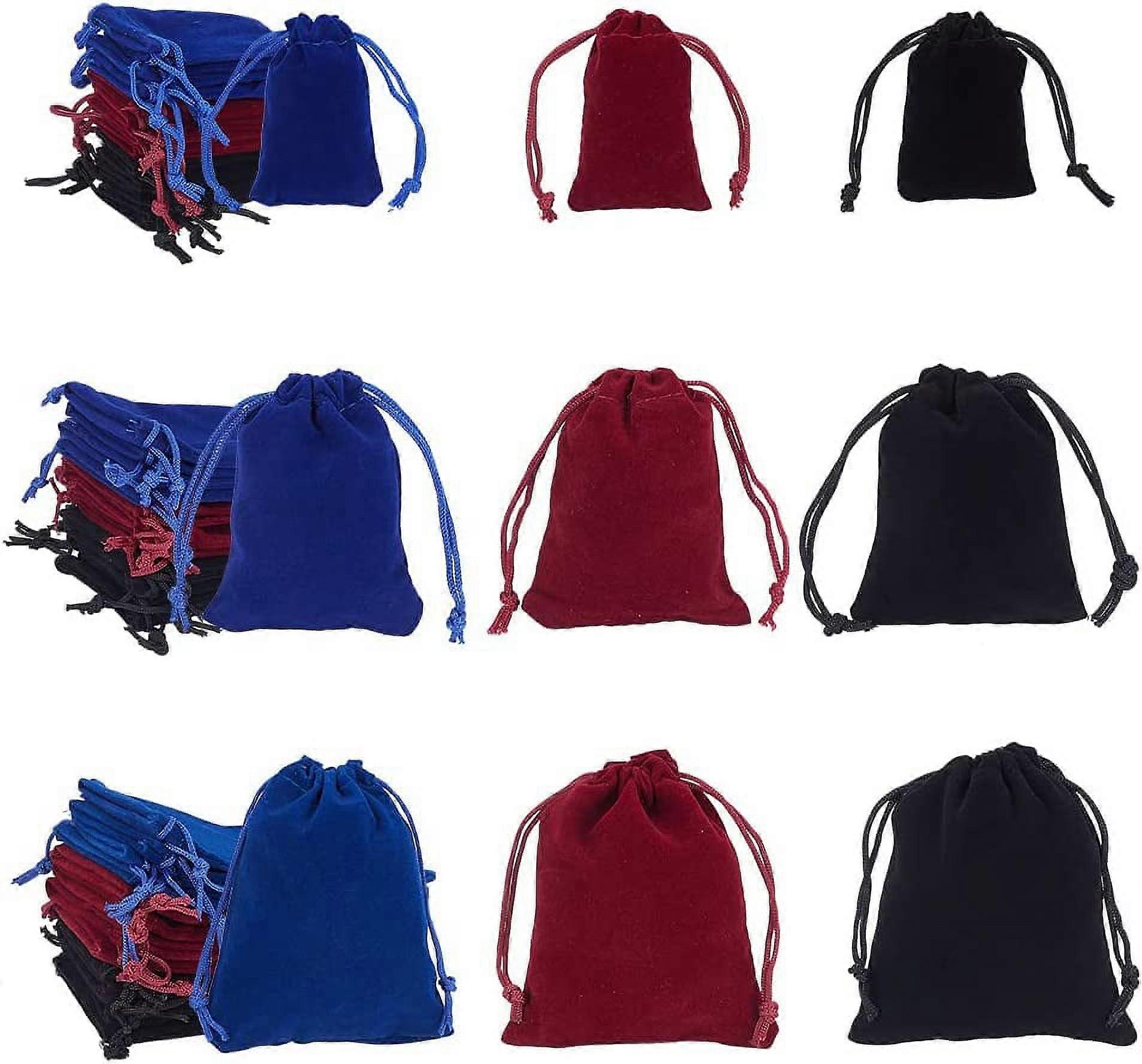 45 Pcs 3 Sizes Drawstring Velvet Bags 3 Colors Drawstring Jewelry Pouches Velvet Bags Candy Gift Bags