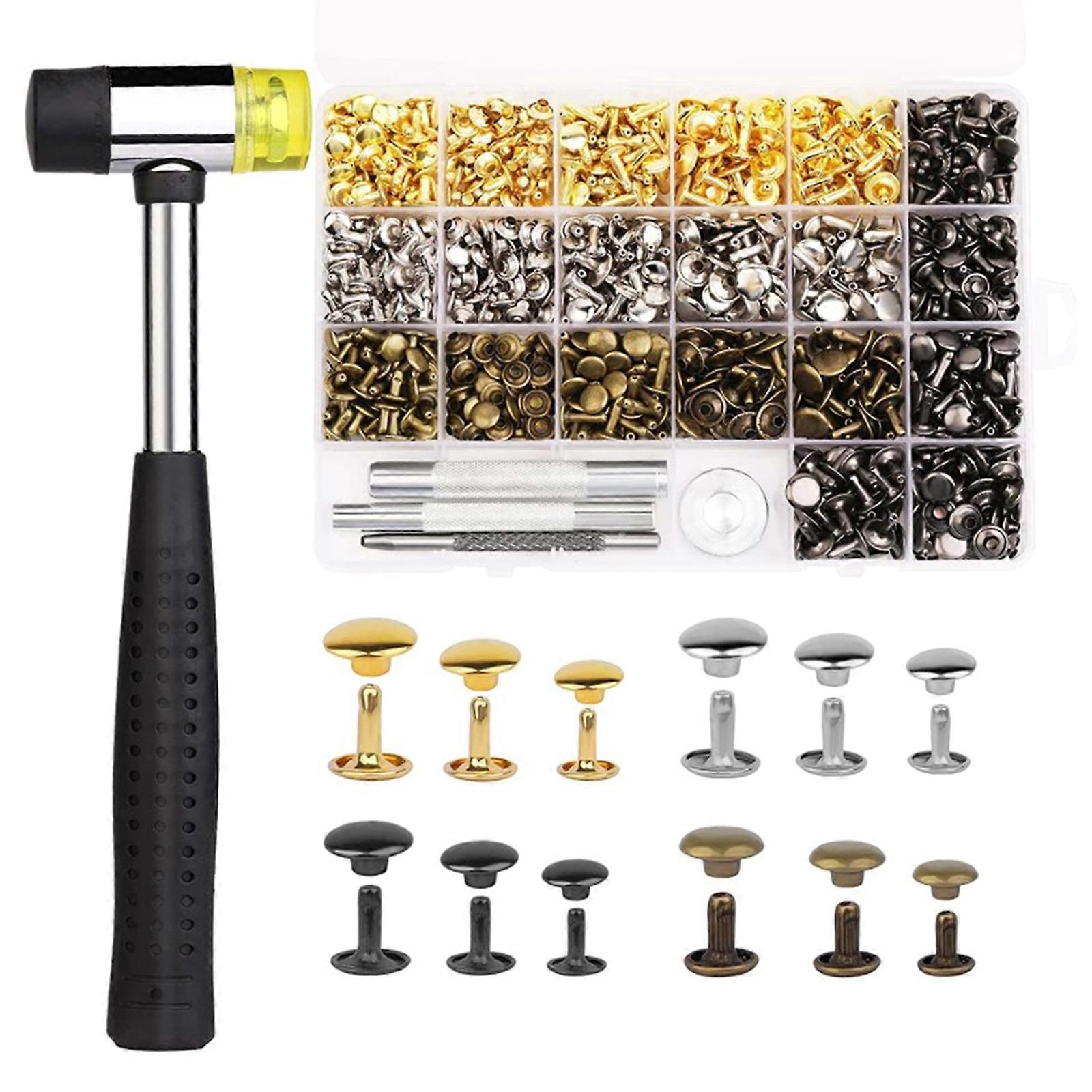 480x/Set Double Caps Rivets Tubular with Punch Tool Metal Leather Rivets Kits for DIY Leathercraft Rivets Replacement