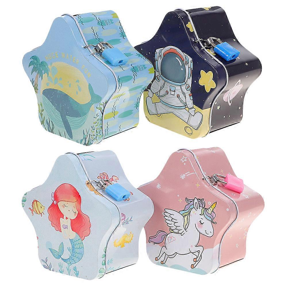 4pcs Adorable Cartoon Money Bank Cartoon Pattern Tinplate Money Box for Training Kids