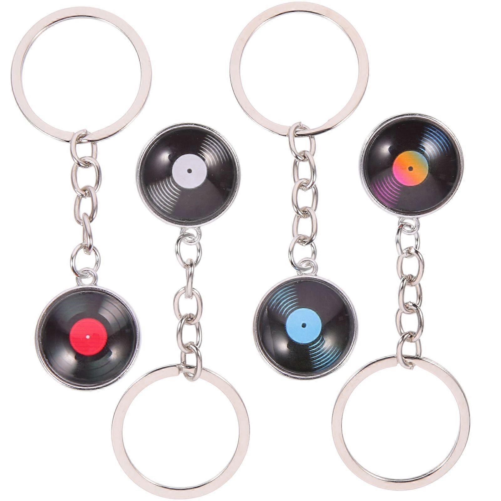 4Pcs Vinyl Record Keyring Metal Key Ring Record Keychain Men Women Keychain Gift