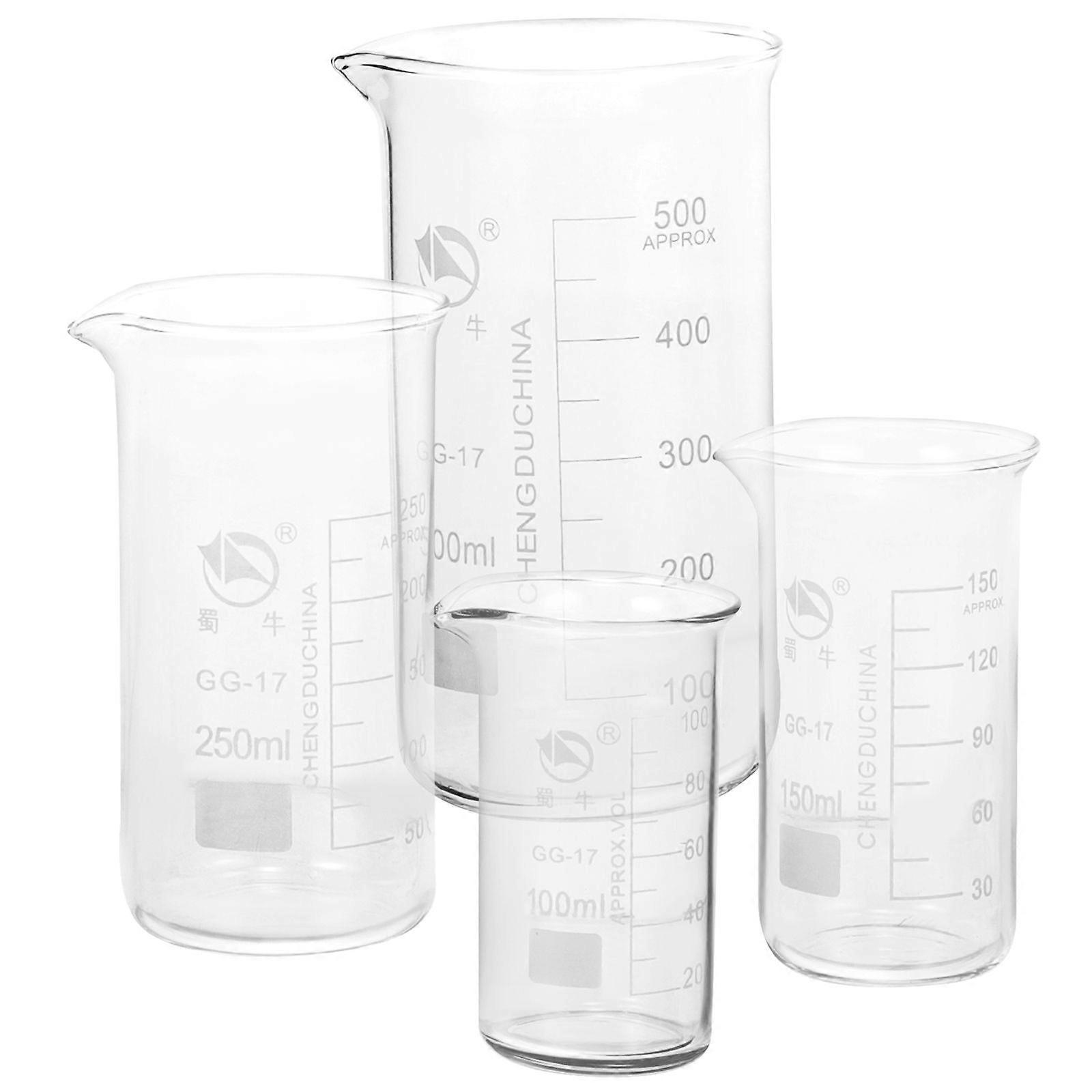 4pcs Glass Beakers Highly Clear Measuring Beakers Chemistry Beakers Lab Glassware 100ml 150ml 250ml 500ml