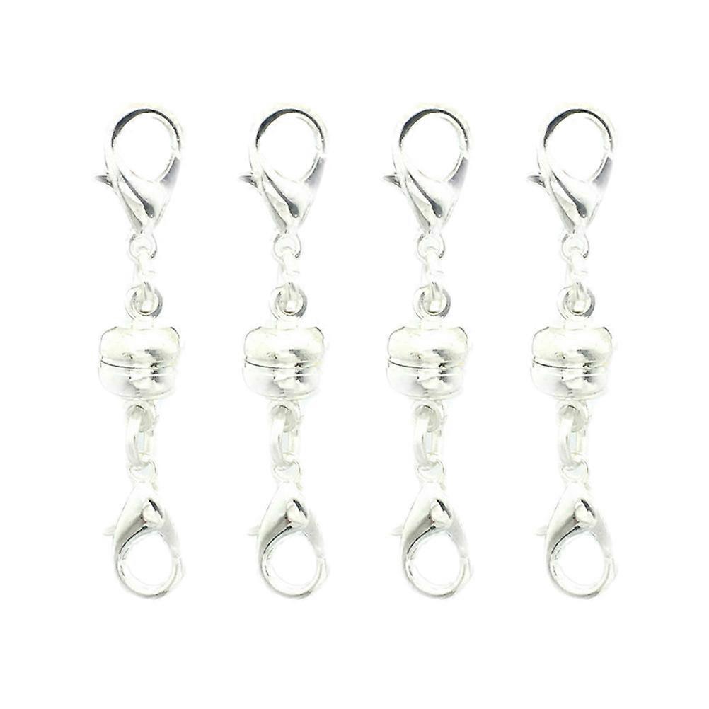 4PCS Elliptical Magnet Buckles with Lobster Clasp Magnetic Jewelry Clasps Necklace Bracelet Connector Accessories (Silver)