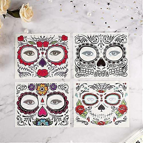 4PCS Day of the Dead Sugar Skull Facial Tattoo Stickers - Waterproof Temporary Halloween Facial Tattoos
