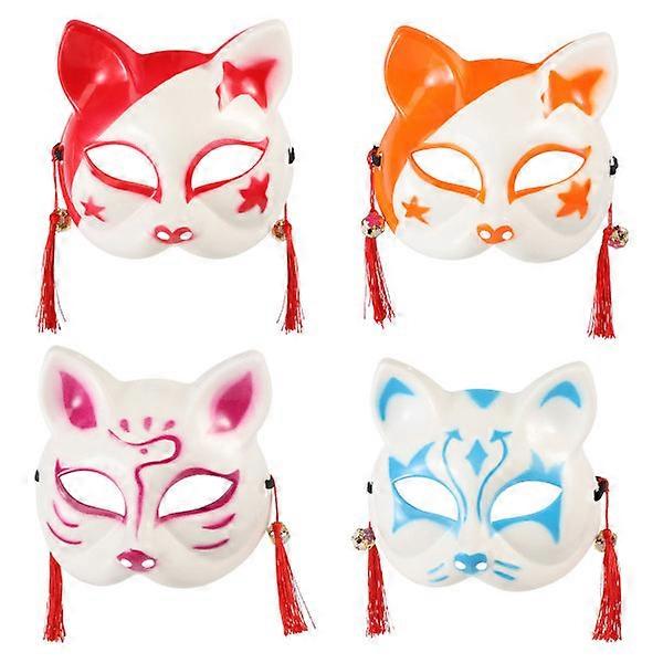 4Pcs Japanese Style Mask Decor Creative Halloween Cosplay Mask Dress Up Mask