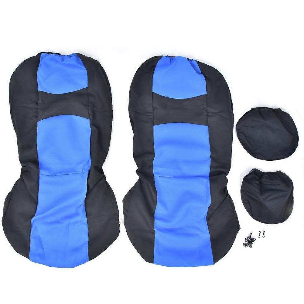 4Pcs Universal Car Front Seat Protective Cover Set Interior Decoration for All Seasons(Blue Black )