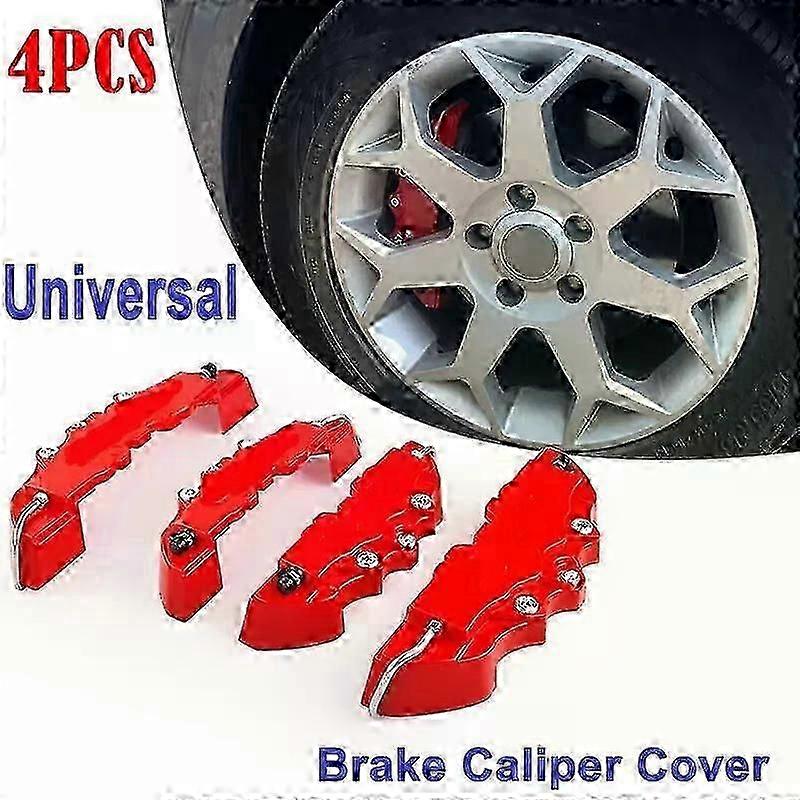 4PCS Universal 3D Car Disc Brake Caliper Cover Red Brake Cover Disc Red Front and Rear Accessories Kit Fit For 14-17 Inch