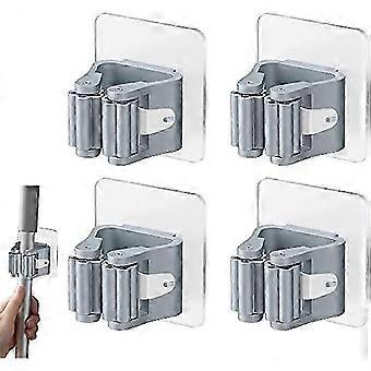 4Pcs No Drill Wall Mount Broom and Mop Holder, Self Adhesive Organizer Clips for Brooms and Mops in White