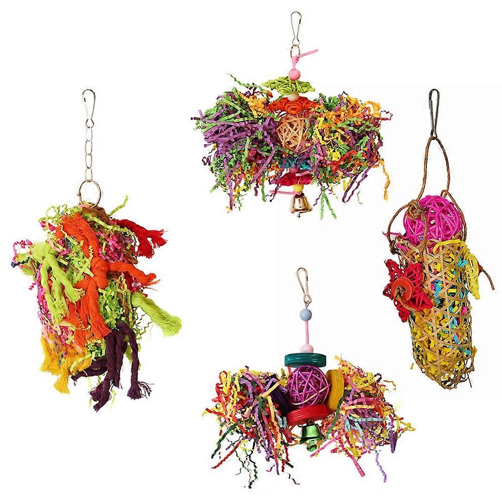4Pcs Bird Parrot Bell Cotton Rope Blocks Ball Hanging Cage Decor Chew Pet Toy