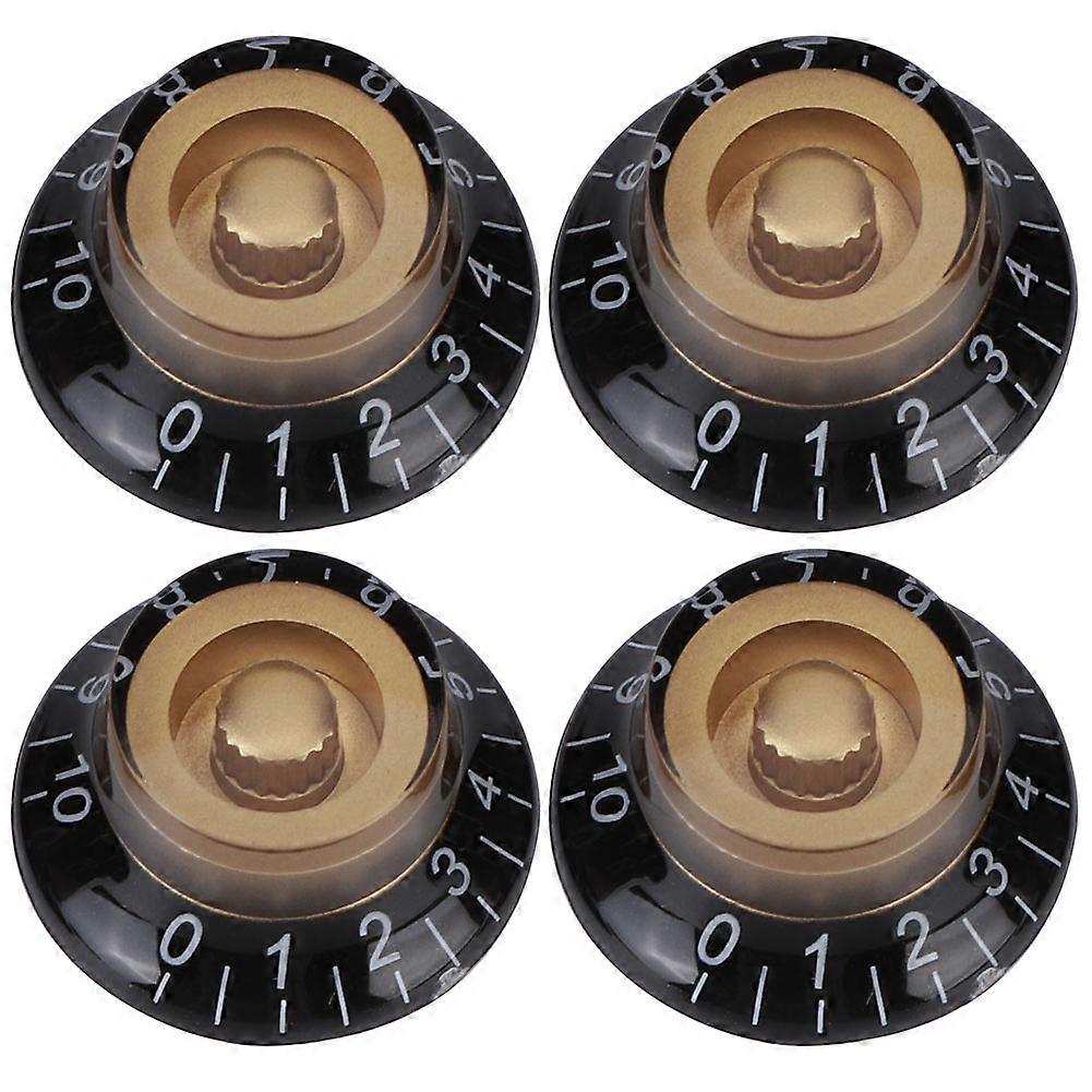 4Pcs Tone Control Knob Transparent Bell Volume Musical Instrument Accessories forGuitar BassGold with Black letter