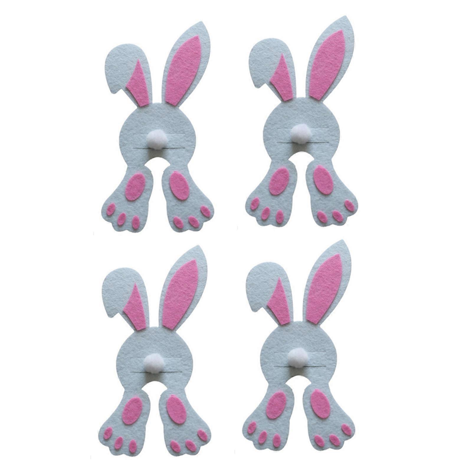 4Pcs Cutter Fork Flatware Bags Rabbit Shape Pocket Cutlery Bag Easters Silverware Holder Party Supplies Easy to Use Pink