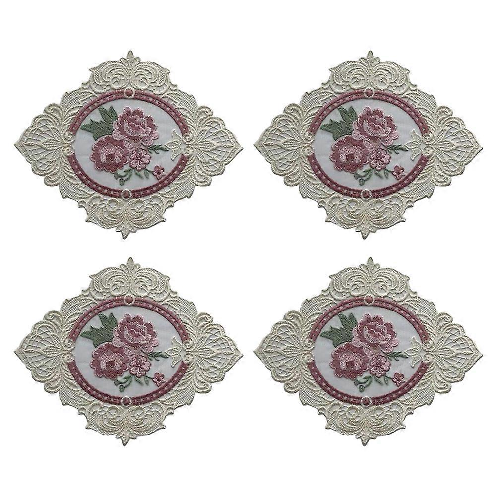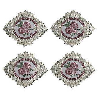 4pcs Flower Embroidered Lace Coasters Decorative Table Mats for Home, Weddings, Holidays and Daily Use