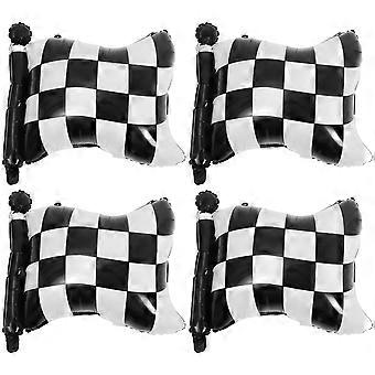 4pcs Black And White Checkered Balloons Checkered Balloon Party Decoration Racing Flag Shape Balloons Racing Car Themed Balloons