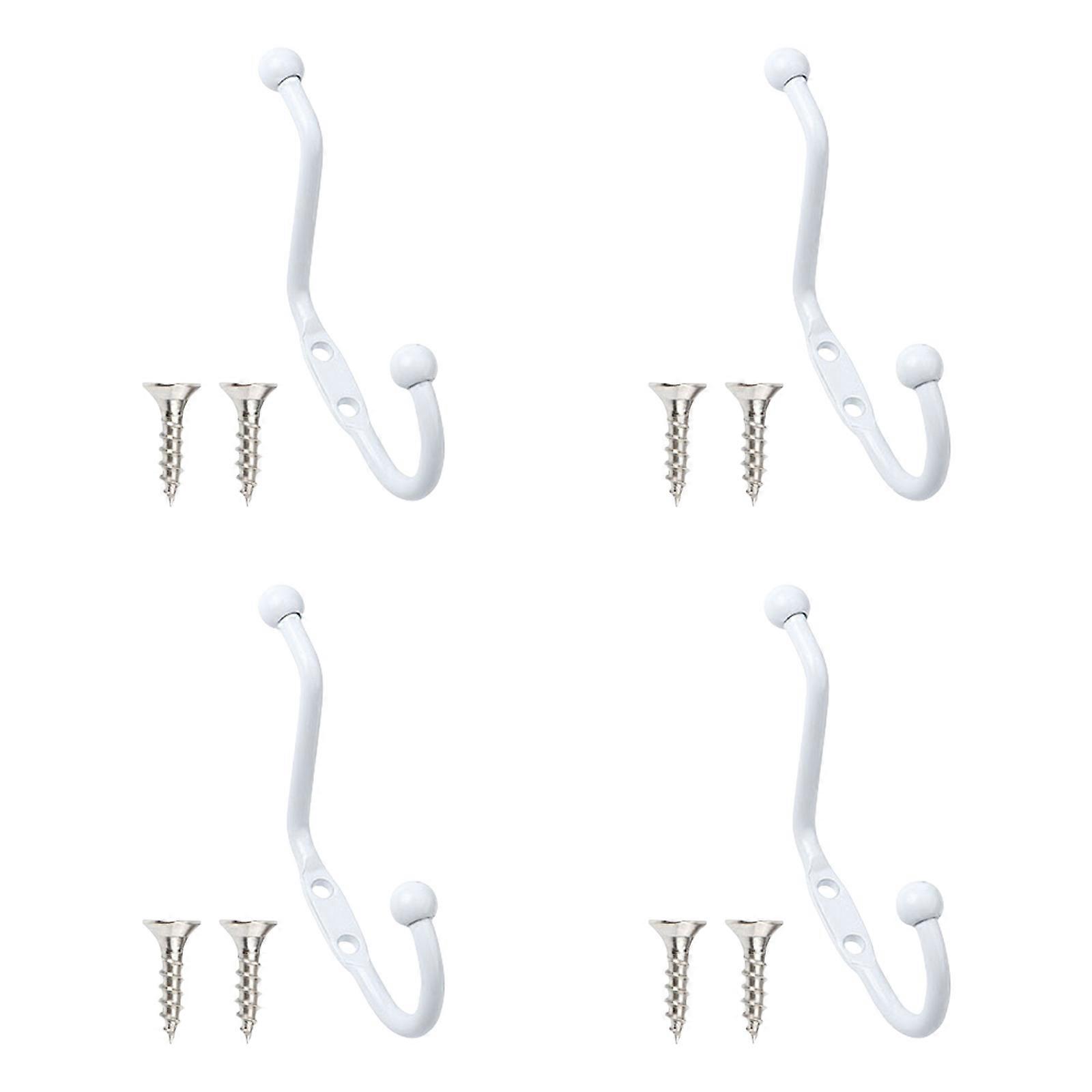 4Pcs Metal Coat Hook Wall Mounted Towel Hanger Double Prong Hook Zincs Alloy Wall Hanger Hook Metal Coat Hanger Hardware White