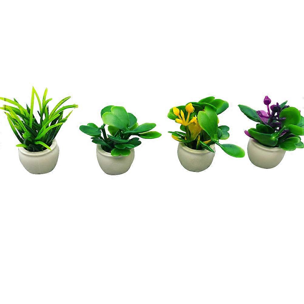 4pcs Miniature Play Scene Model Accessories Mini Plant Model Flower Pot for Decoration (Green, Random Pattern)