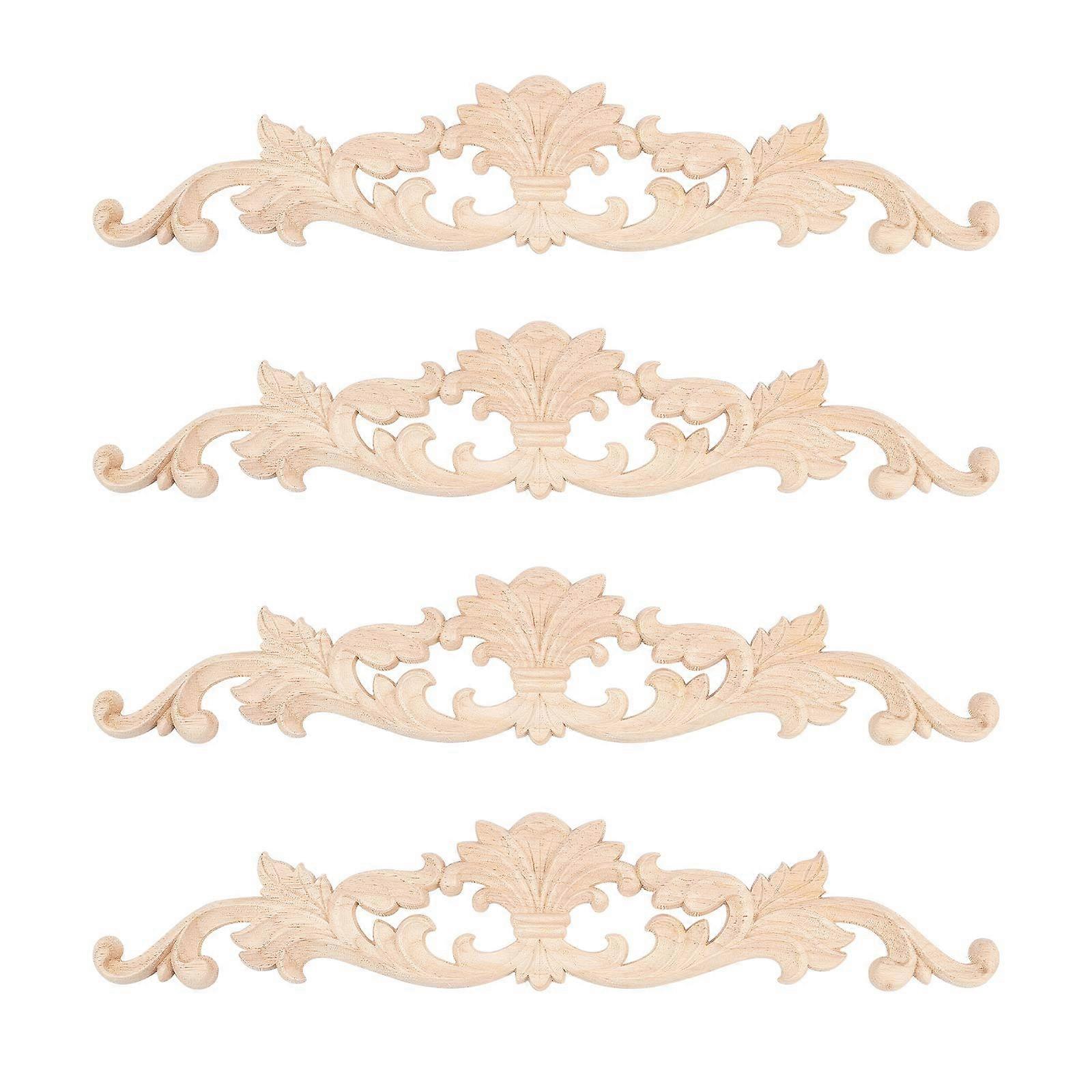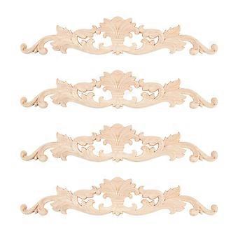 4Pcs Wooden Carved Onlay Appliques Wood Carving Decal Unpainted Furniture Decoration for Home Door Cabinet Decoration