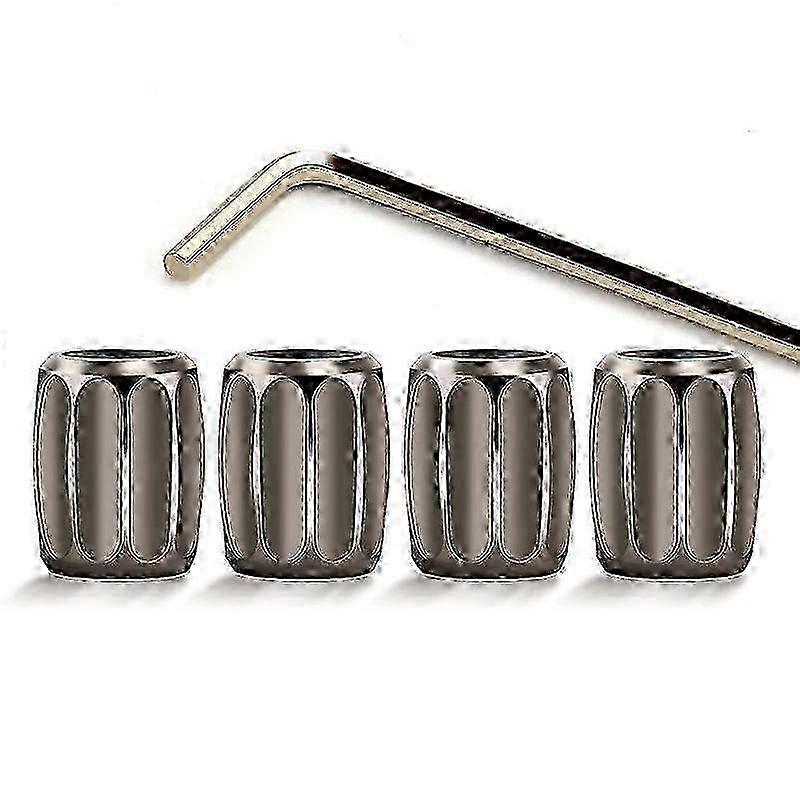 4pcs Brass Tire Valve Covers Metal Tire Valve Caps Dust Tire Covers (Black)