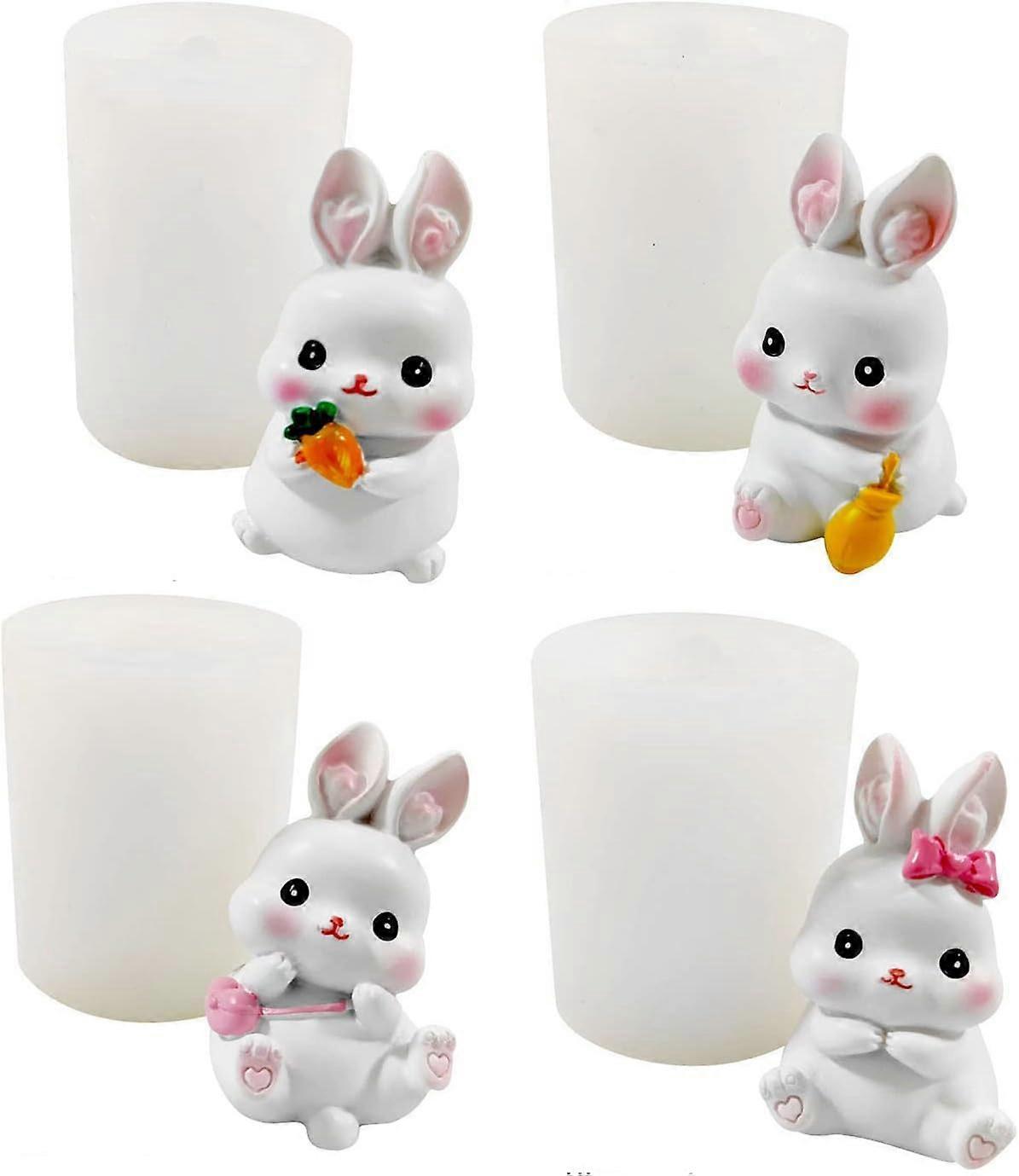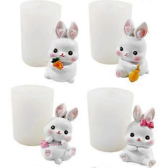 4Pcs Easter Rabbit Silicone Mould, 3D Easter Bunny Candle Moulds & Soap Mould, Silicone Baking Mould, Ears Rabbit Mousse Cake Mould