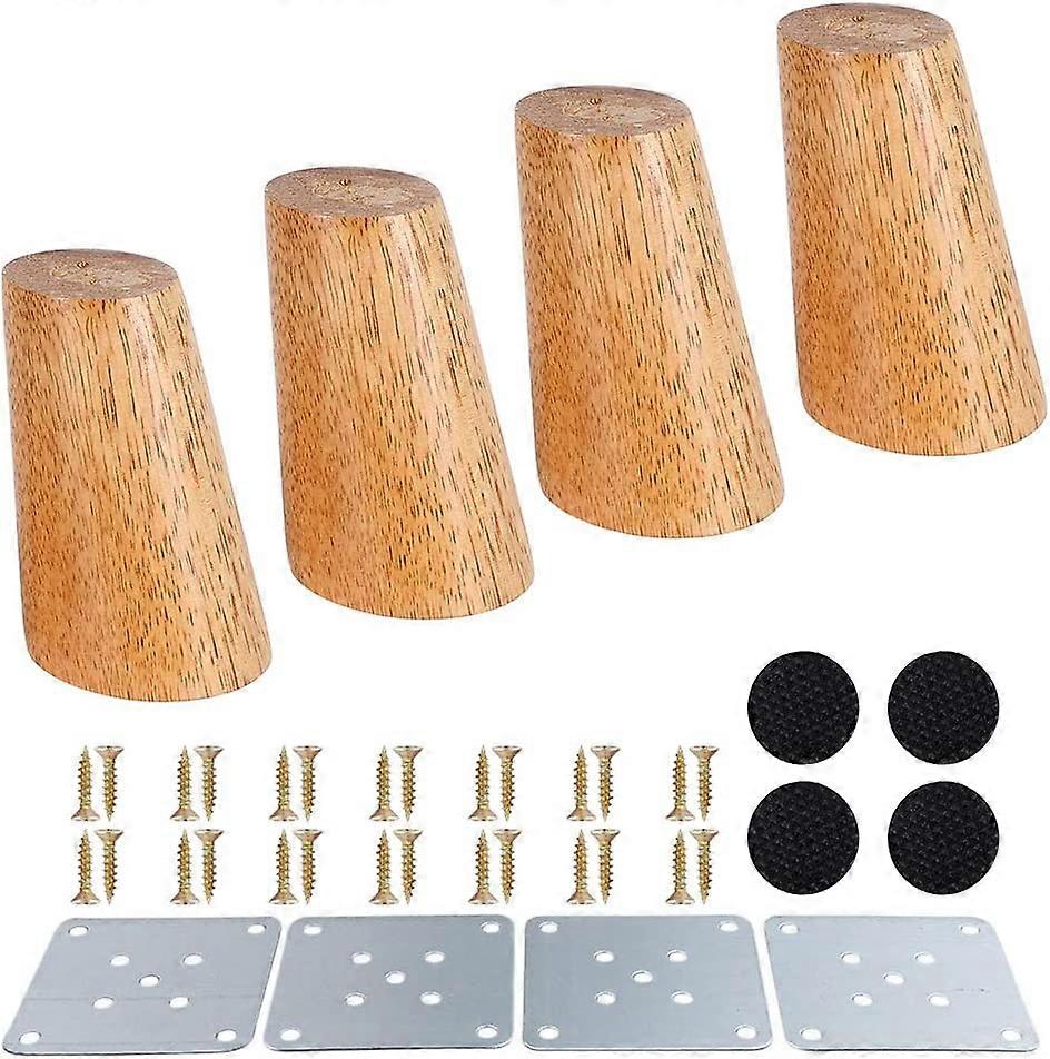 4pcs Height Furniture Legs 8cm Tapered Wooden Sofa Legs Reliable Natural Solid Wood Cabinets Feets with Mounting Plate Screws Anti-Slip Mats for Sofa