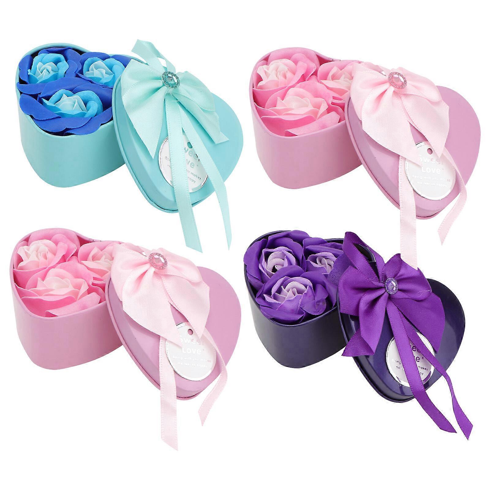 4Pcs Soap Rose Gift Box Creative Iron Gift Box Valentine's Day Gift Mixed Color