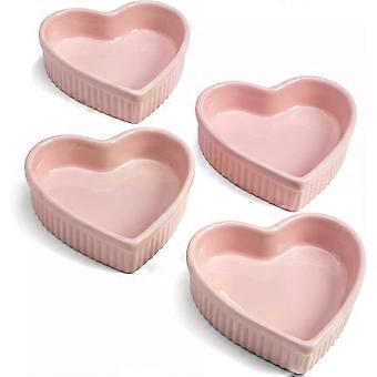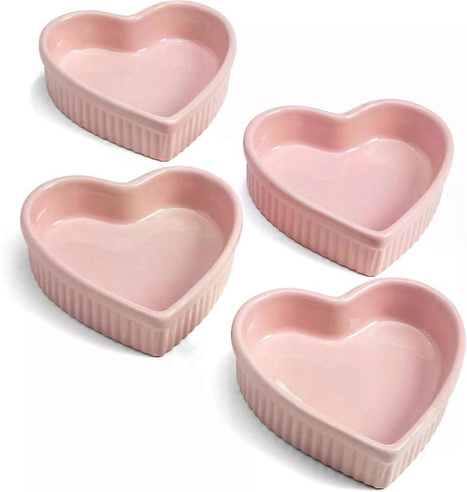4pcs Heart Shaped Ramekin Set, Mini Ceramic Ramekins, 3-Ounce, Oven Safe, Microwave & Dishwasher Safe Baking Dishes