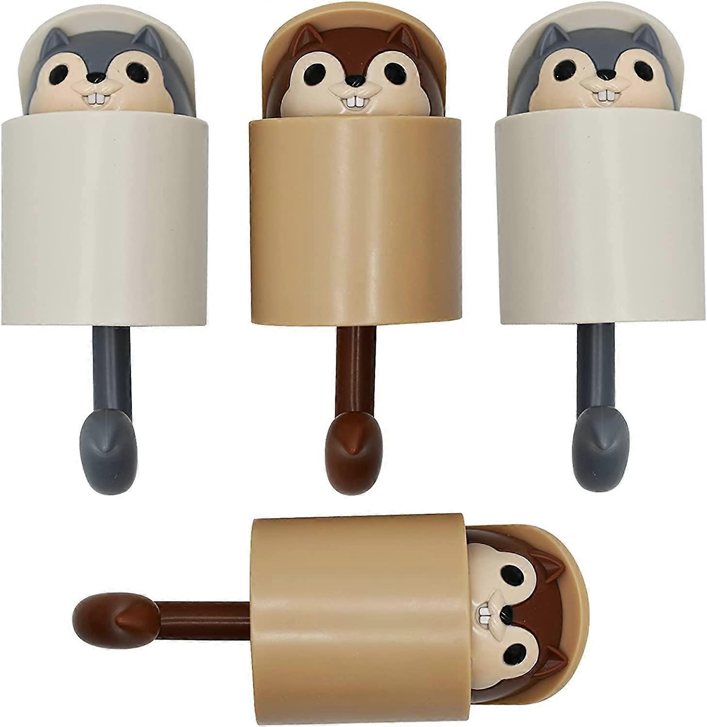 4PCS Squirrel Shaped Adhesive Wall Hook Cute Cartoon Animal Wall Hooks for Kids Room Living Room Bedroom Home Decoration