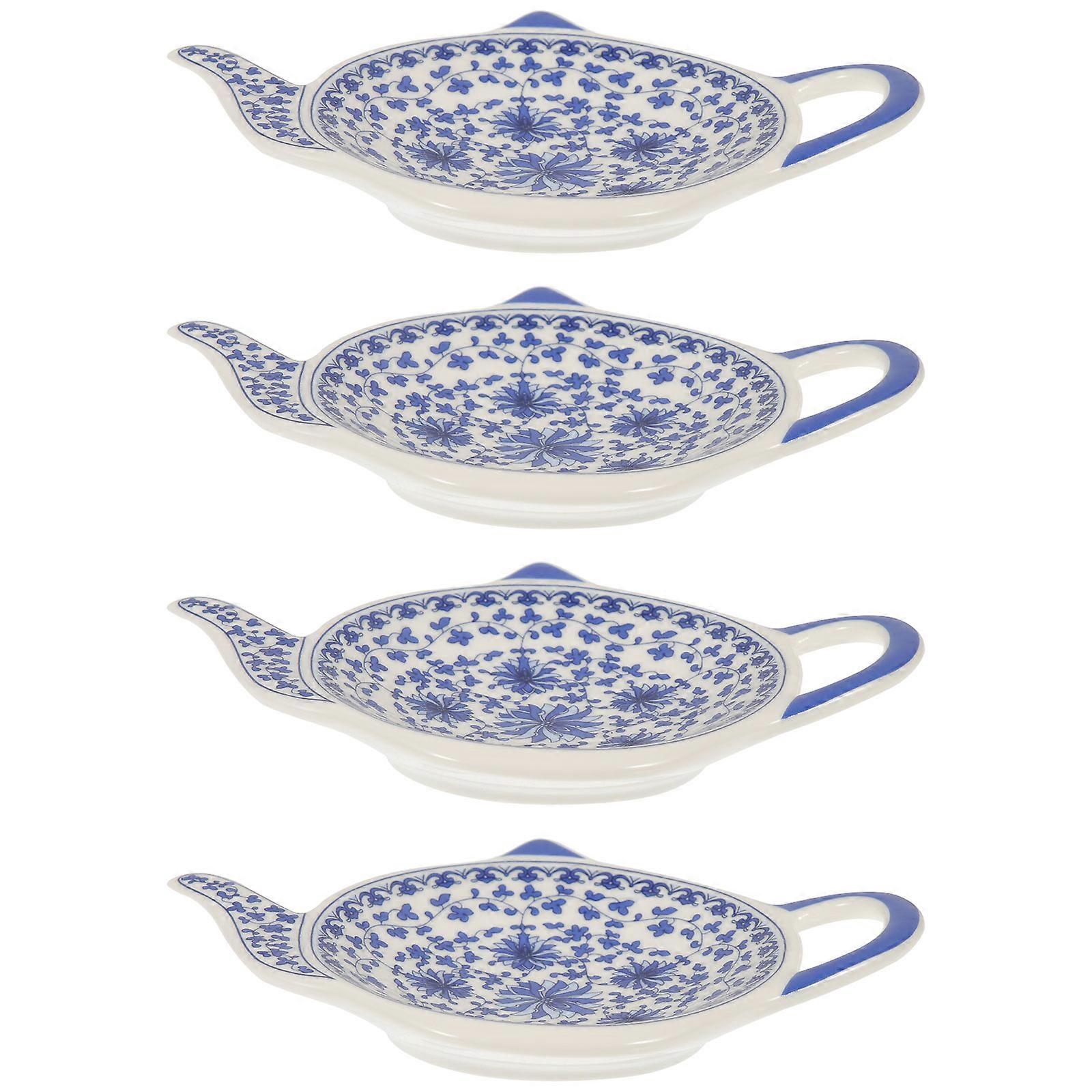 4Pcs Teapot Shaped Tea Bag Holder Teabag Coaster Seasoning Dish for Sauce Dessert
