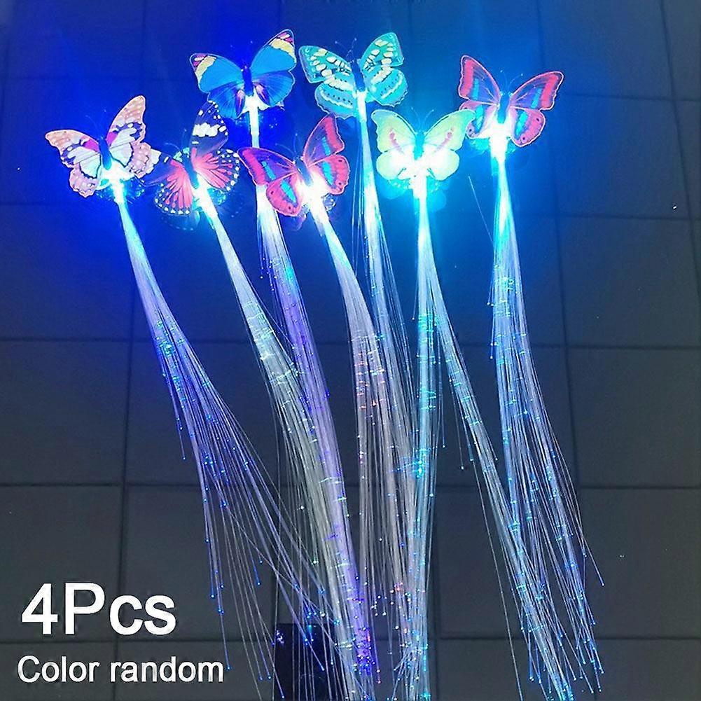 4pcs Luminous Butterfly Braid Rainbow Braid Fiber Optic Wig