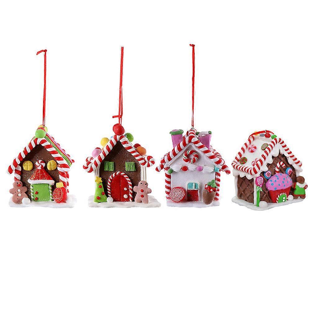 4Pcs Christmas House Shaped Adornment Polymer Clay Crafts House Model Decoration