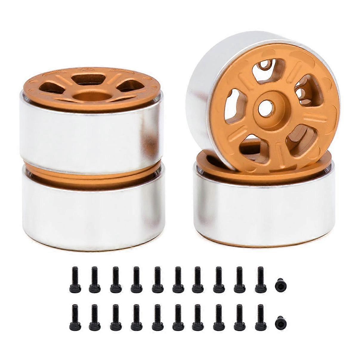 4PCS 1.0in Metal Wheel Rims for 1/24 1/18 RC Crawler Car Axial SCX24 AX24 FCX24 Enduro24 TRX4M,Wide 5-Spokes Orange