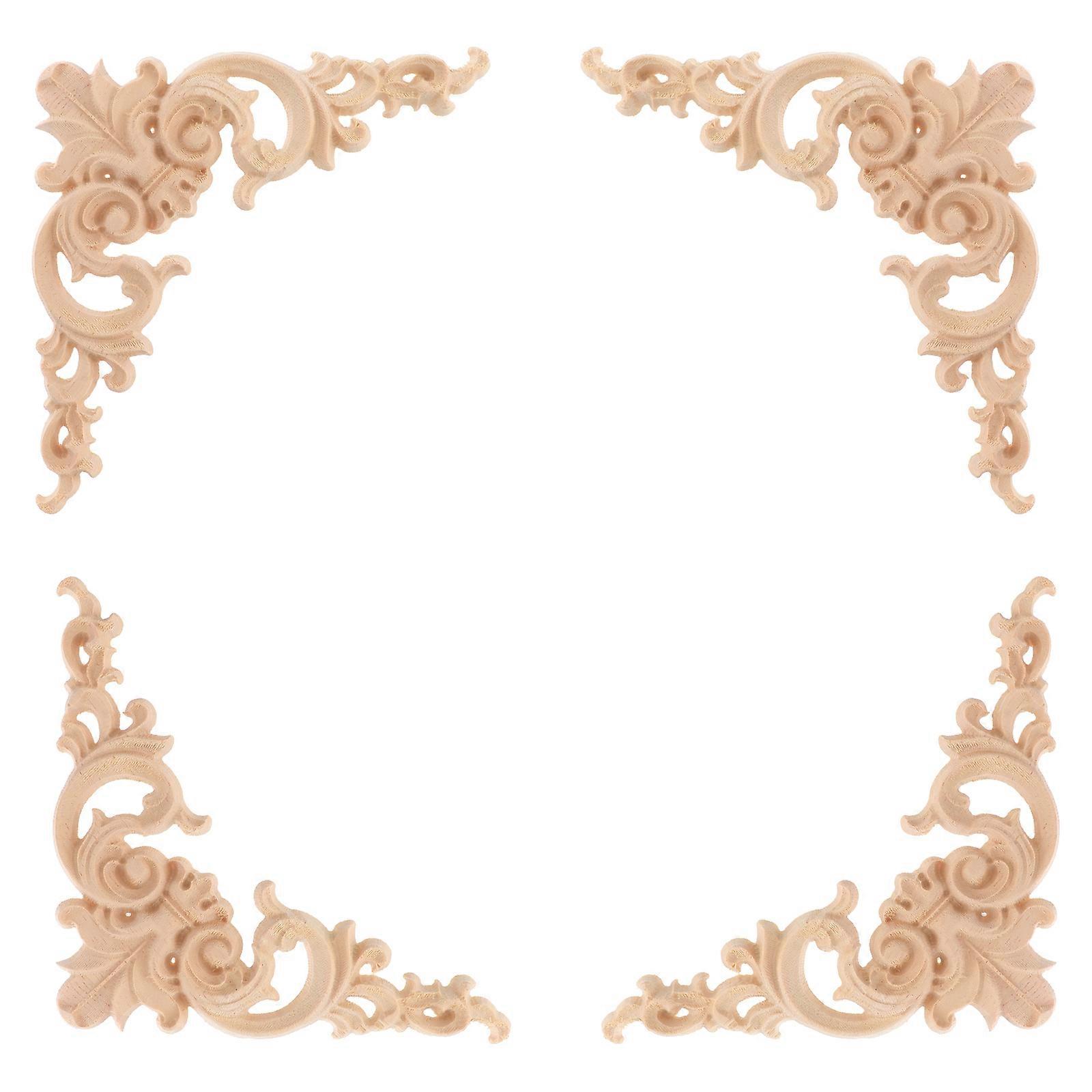 4pcs 11.5x11.5cm Solid Wood Carved Corner Onlay Furniture Home Decorations Unpainted Applique(C-073)