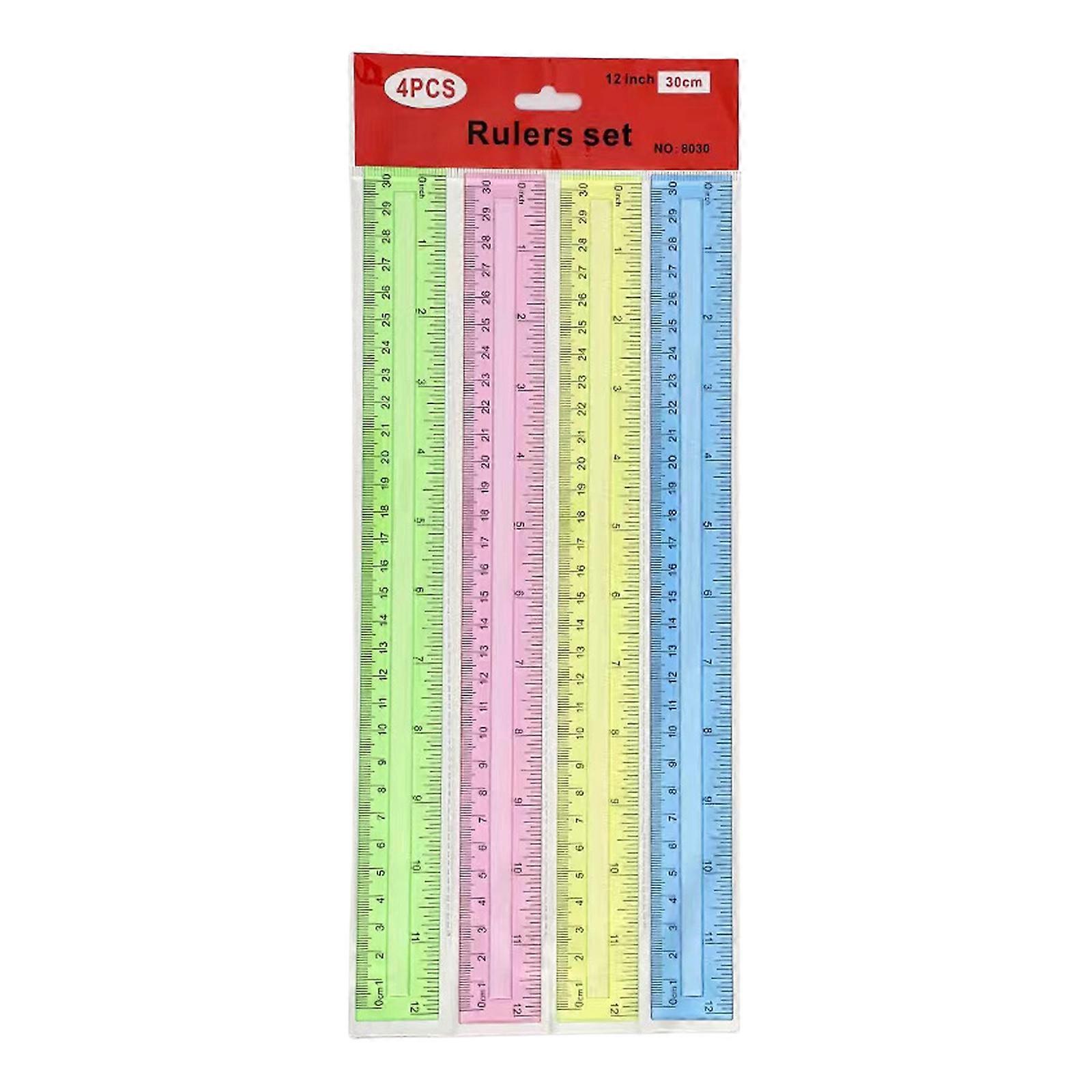 4Pcs 12Inch Clear Ruler Straight Ruler Inches and Centimeters Double Scale Ruler Drawing Ruler Math Ruler Measuring Tool Four consecutive tra