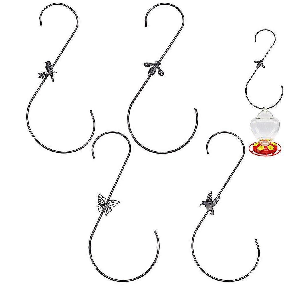 4Pcs 4 Styles Iron Hanging Hooks Butterfly & Bee & Bird Black 300~305x130~132x5mm 1pc/style