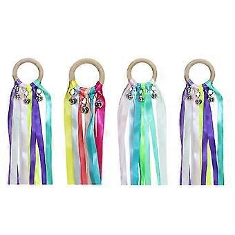 4pcs 50cm ξύλινη στρογγυλή κορδέλα χορού στηρίξεων κουδουνιών μαζορέτας για το συμβαλλόμενο μέρος επιδόσεων σκηνής φεστιβάλ (πολύχρωμο τυχαίο)